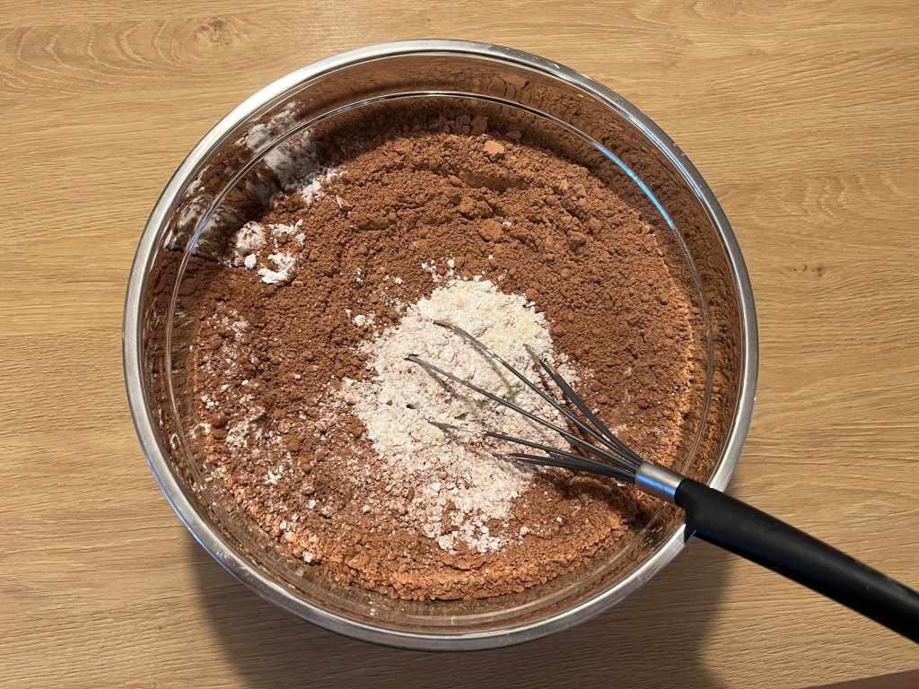 Whisk a lot to make sure it’s incorporated, but carefully so you don’t toss powder all over the kitchen.