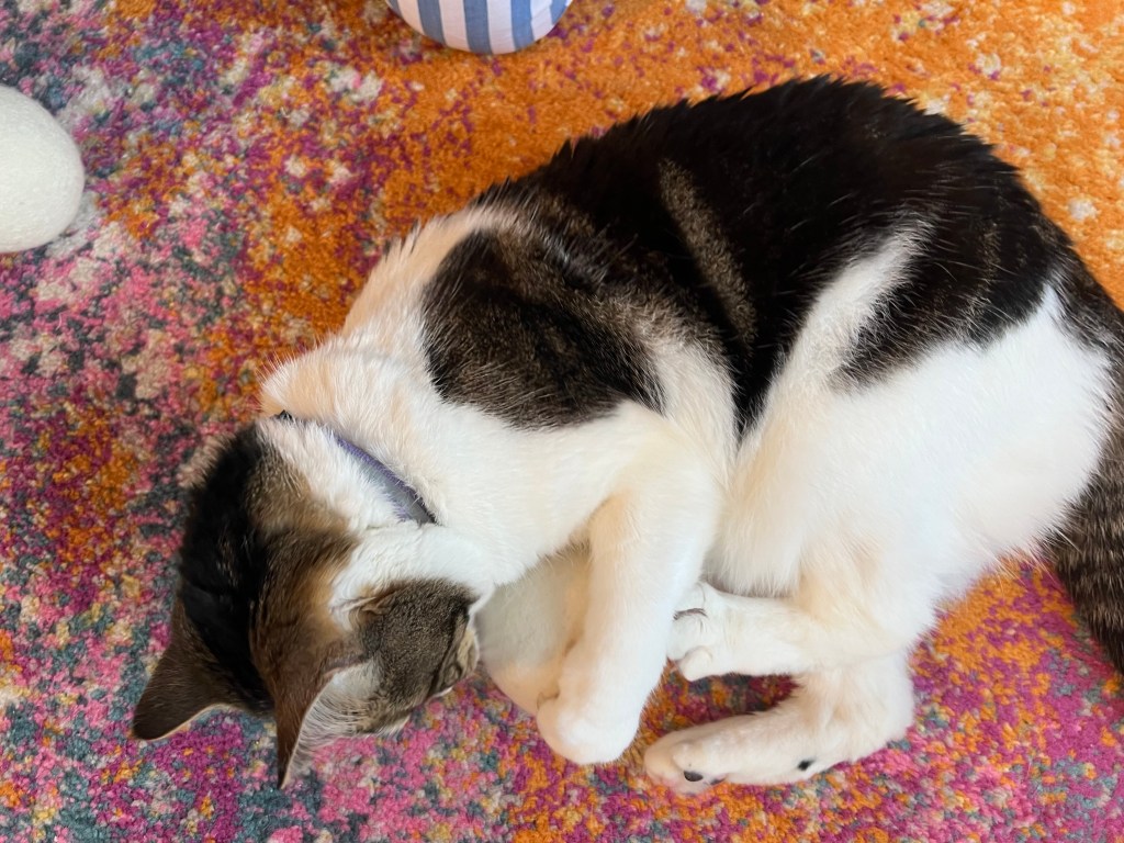 Tally attacking a wool ball. She lost her damn mind on them, and it was so hard to get a picture because she kept murdering them.