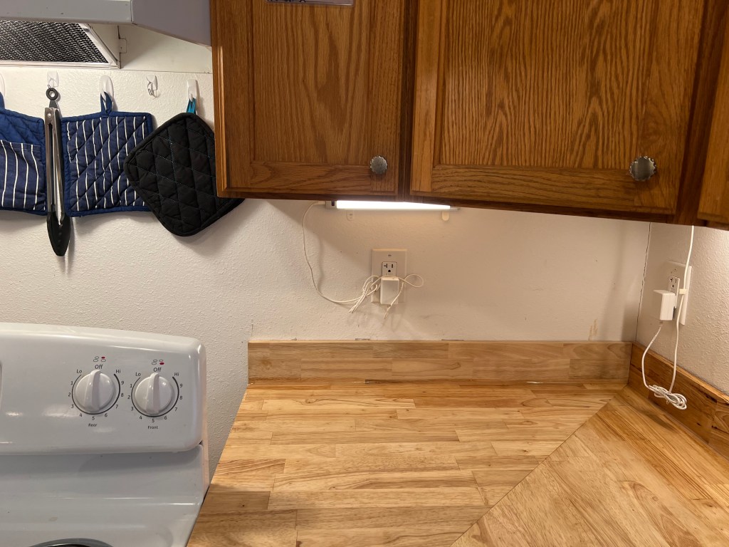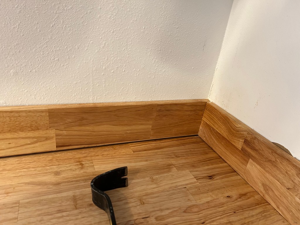 The side piece was a bit wonky, so I scribed it, and made it fit. It was the first time I have ever done that. It took me 20 minutes to fix it so it had no gaps.