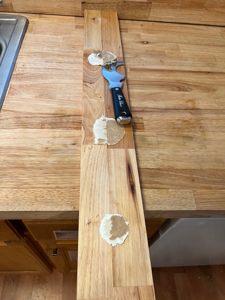 One of the things that killed me was that he installed the butcher block backsplashes crooked with up to 3/8ths between the back splash and the counters, and cut all the backsplashes short from the counters.
