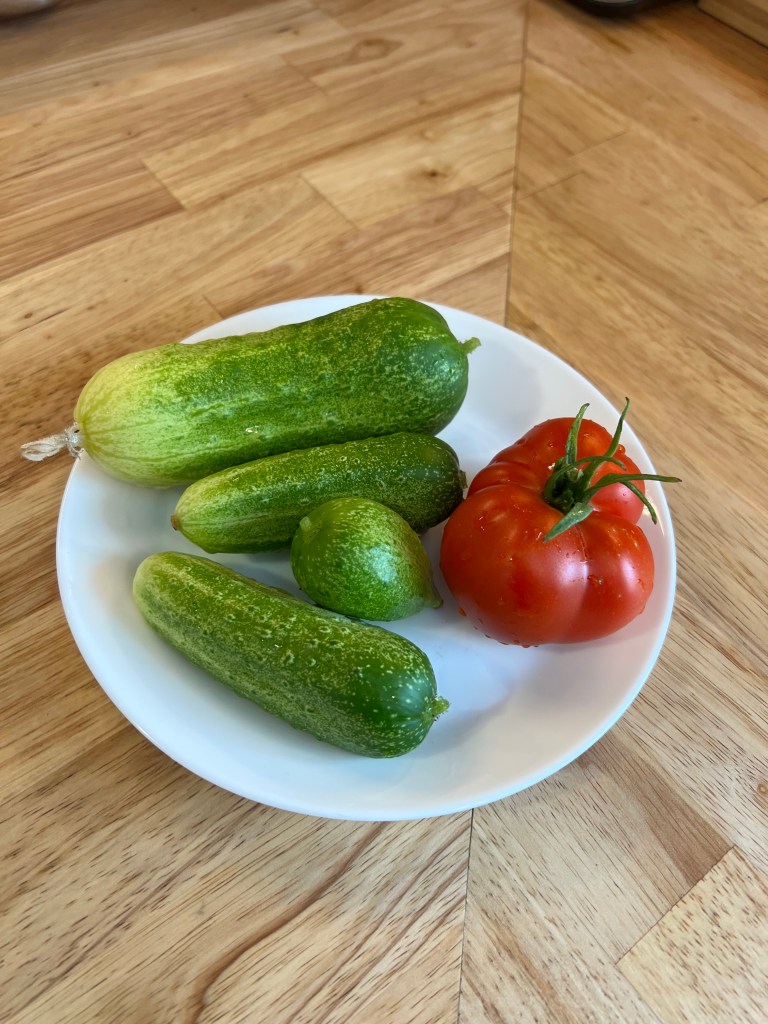The above are 4 cucumbers and 1 tomato that are ahead of the pack. I am so thrilled by this.
