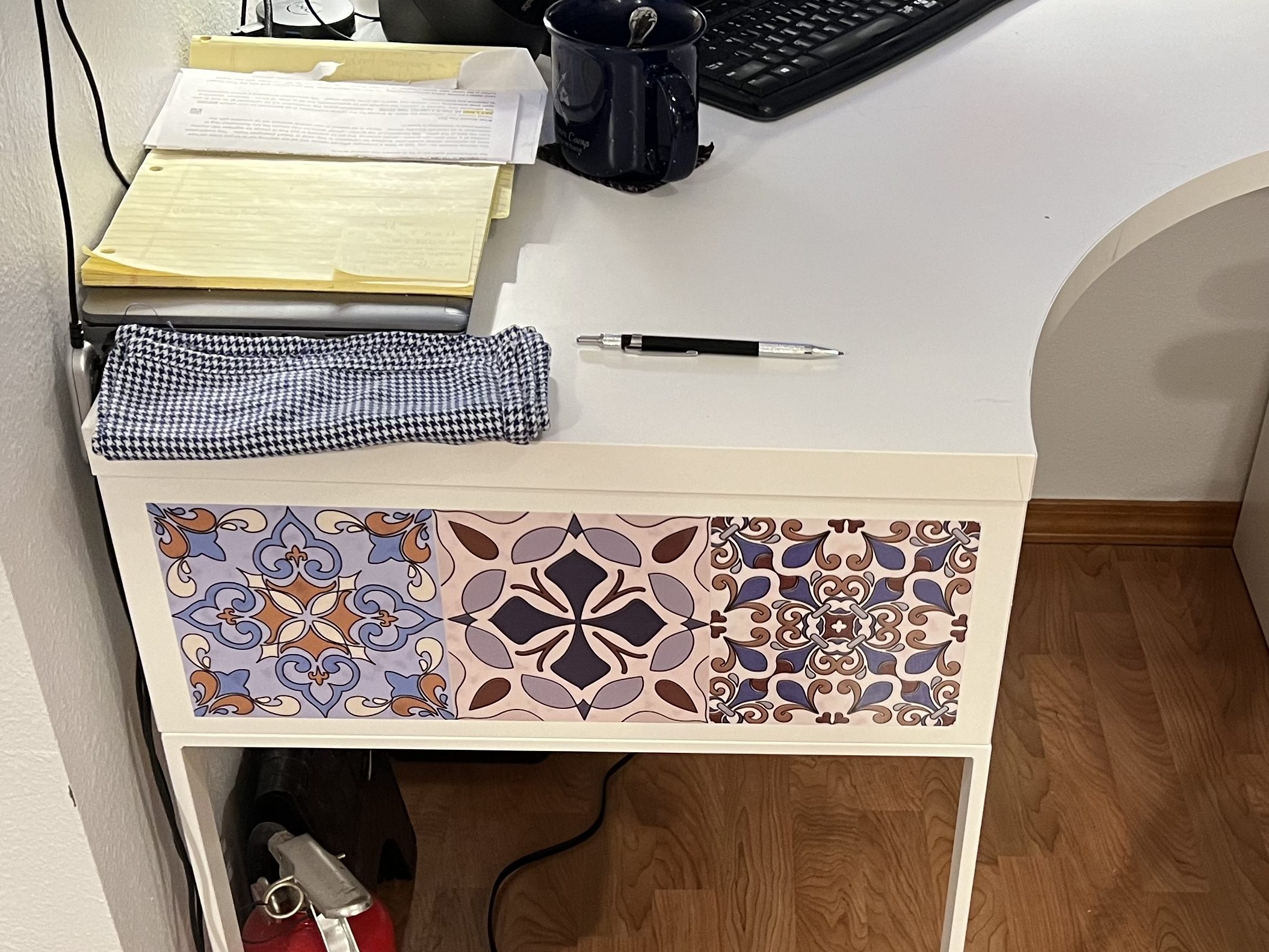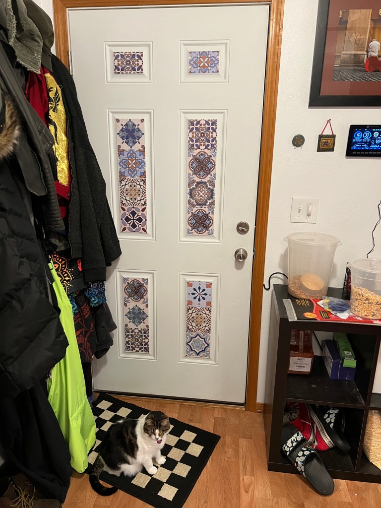 First, the floor is done, primarily. With self stick tiles there is always a chance a few of them will bow and bubble. We’ve had uncharacteristic 90F days, and it did loosen some of them. I will be using a dab of liquid nails to keep them down. That’s worked for me in the past with no issues. I lived for 7 years in a double wide trailer on a floor I put tiles like this down this way, and it looked the same when I moved out as when I put it in.