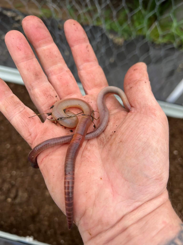 The damn cat, which is lovely and beautiful and feral, had dug up my mint bed to pee in it. I had to drag out the chicken wire and wrap each of those small round beds to keep him out.